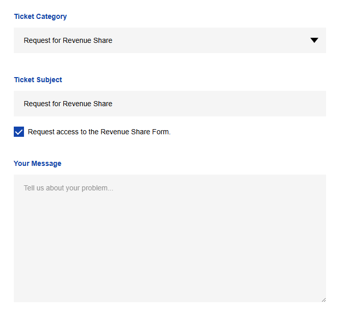 Now, select Request for Revenue Share as the category.